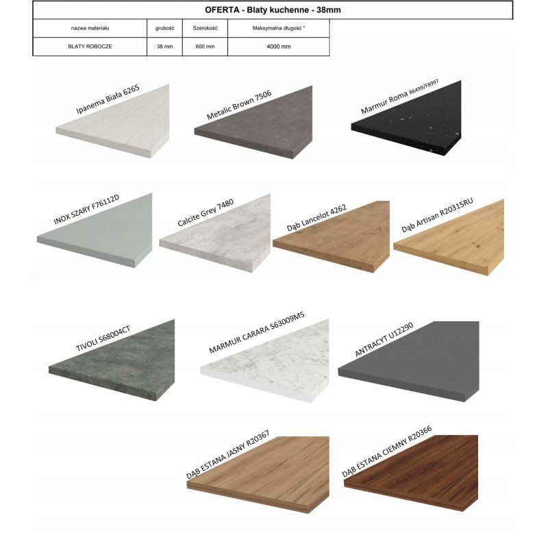 * Blat (opcjonalny): szafki nie są wyposażone w blat – należy dokupić go osobno, dobierając odpowiedni wymiar i kolor.