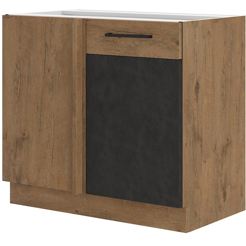 Szafka kuchenna narożnik dolny z półką. Grafit/Dąb Lancelot. 105 ND 1F